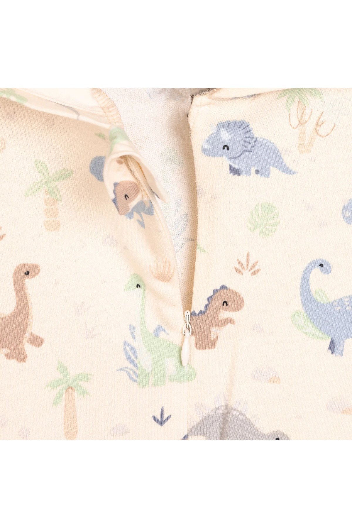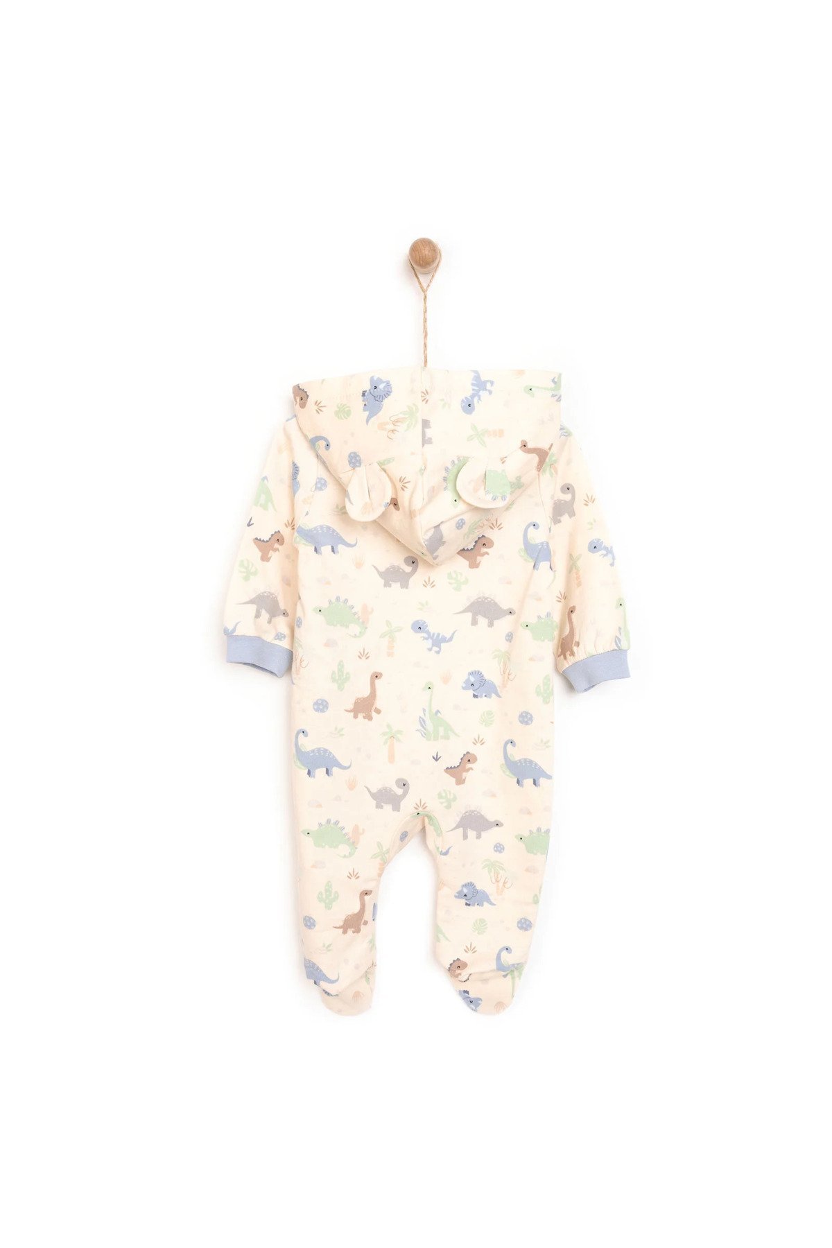 Erkek Bebek Dinozor Desenli Kapüşonlu Tulum – Bej (3 Ay – 1 Yaş)
