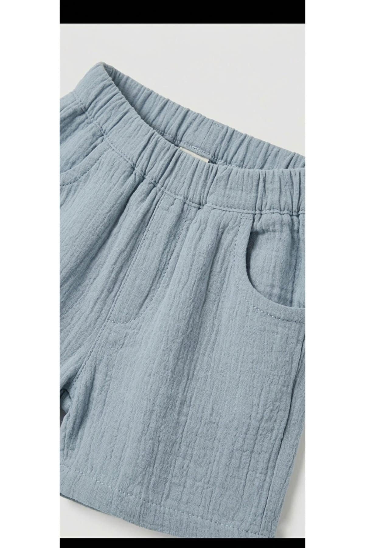Erkek Bebek Müslin Şortlu Takım – Mavi İnce Set (3 Ay – 5-6 Yaş) | ZEYDER2097