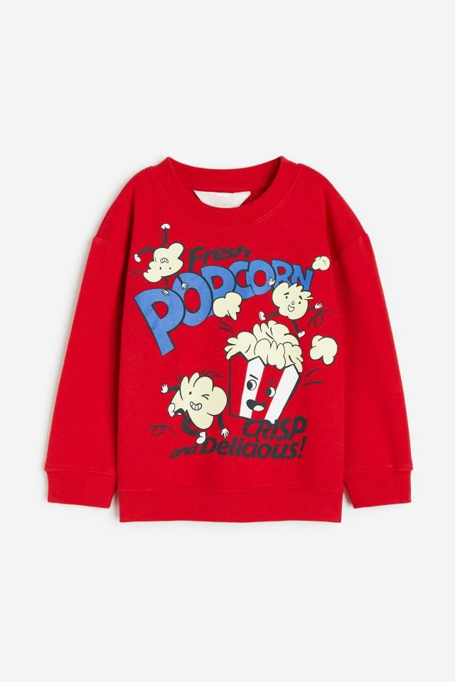 İçi yumuşak tüylü erkek çocuk popocorn baskılı sweatshirt kumaştan üst. Rahat kesimli, ribana şeritli yuvarlak yakalı, düşük omuzlu, uzun kollu, manşetleri ve etek ucu ribanalı.