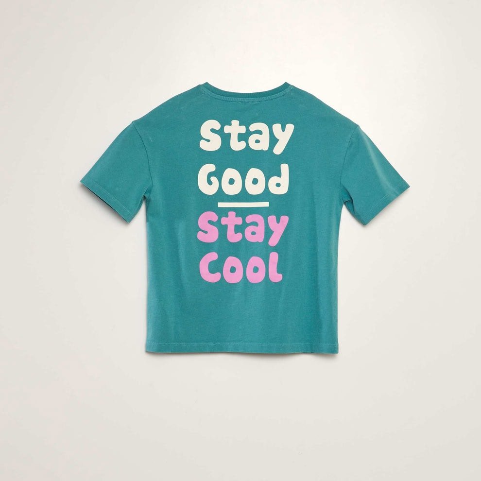 Modern kesimiyle çocukların rahat hareket etmesini sağlayan bu t-shirt, yaz aylarında serin tutan yumuşak kumaşı ile de gün boyu konfor sunar. Sırt baskısı, genç stilin öne çıkan unsurlarından biri olup, çocukların enerjik dünyasını yansıtır. Aynı zamanda çocuğun tarzını özgürce ortaya koymasına olanak tanır.