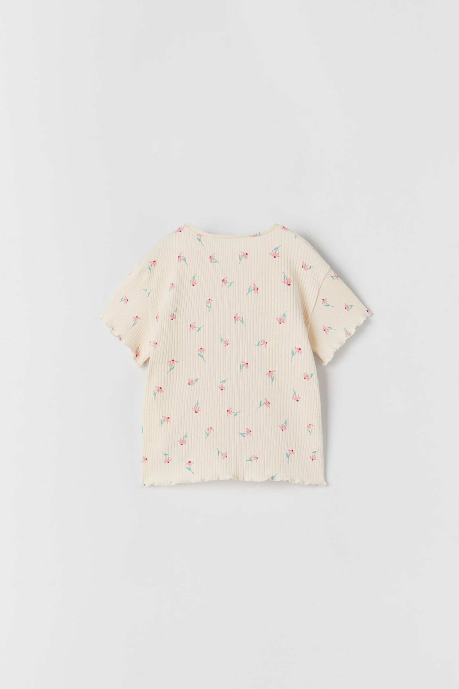 Kız Bebek Çiçekli Fitilli T-Shirt