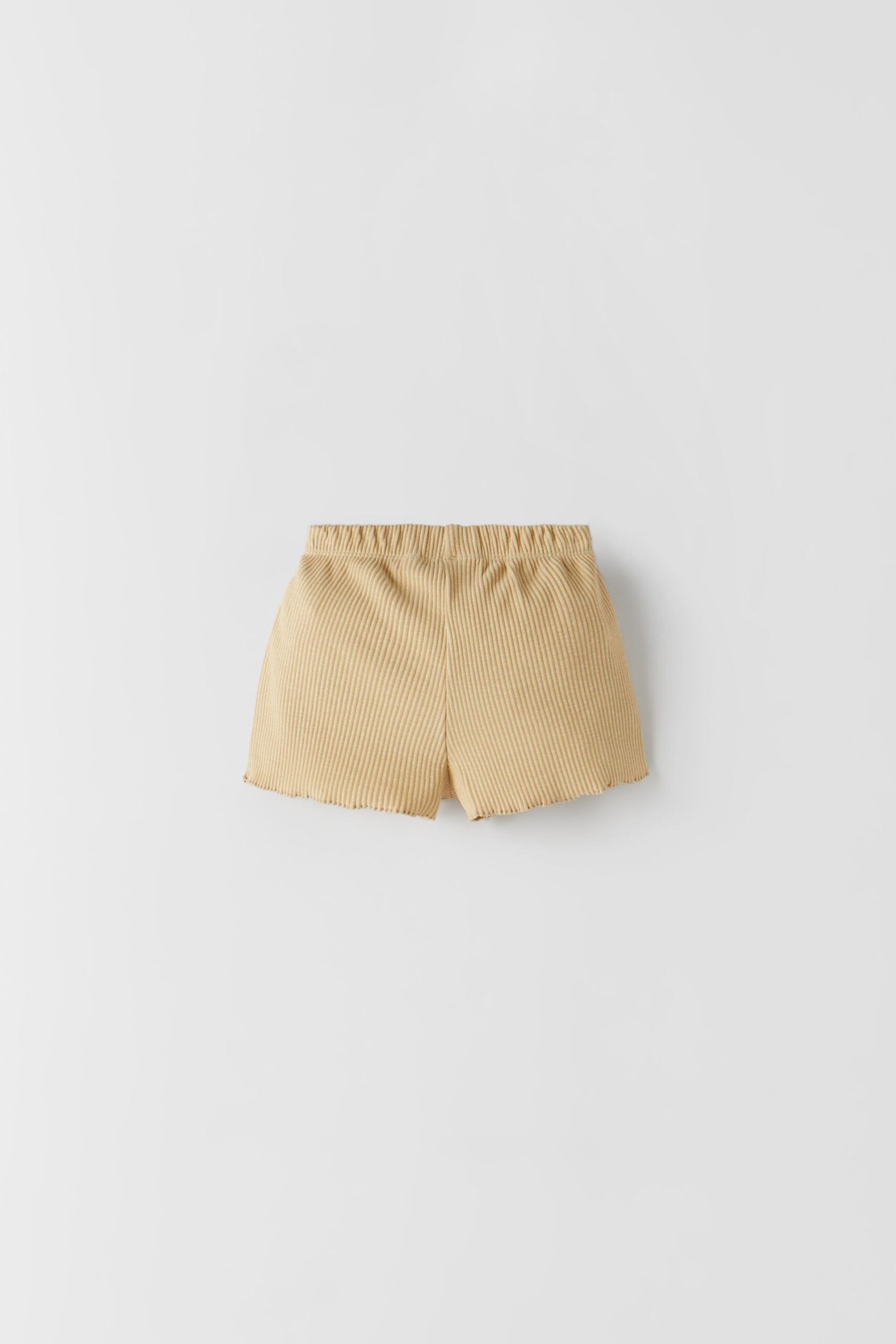 Kız bebek fitilli şort modeli, hardal rengi ve rahat kalıbıyla 6-9 ay ile 4-5 yaş arası bebekler için ideal yazlık alt giyim ürünüdür.