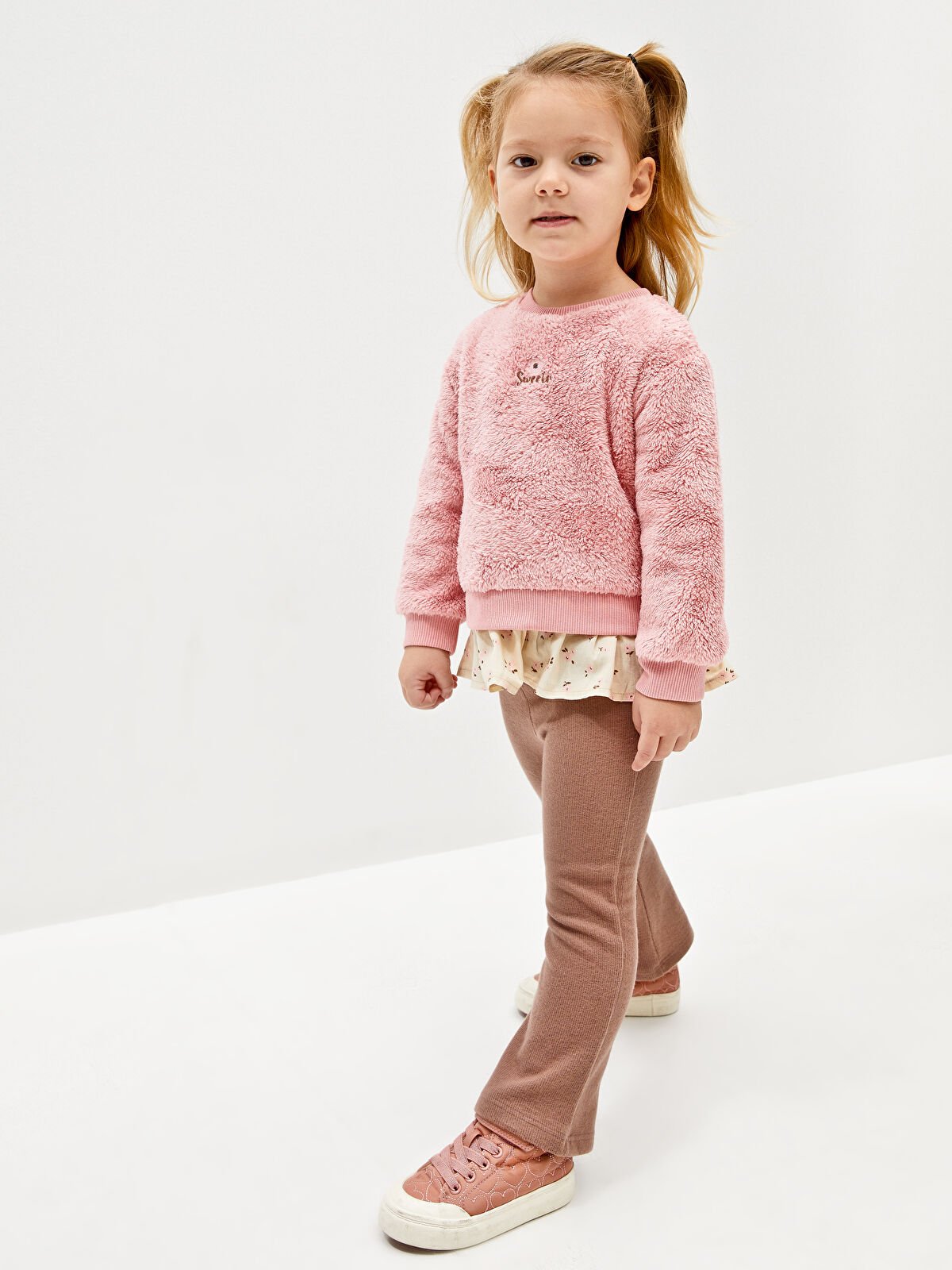 Kız Bebek Gömlek Detaylı Peluş Kazak