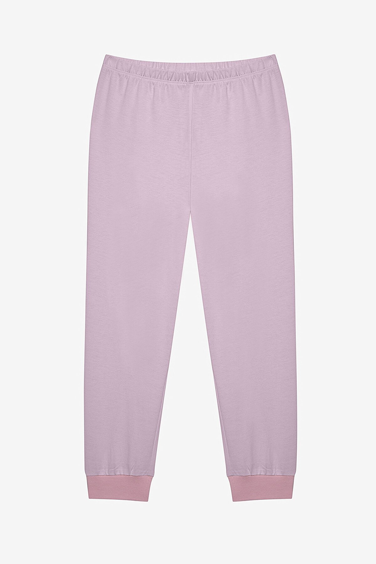 Pembe tonlarının verdiği sıcaklık, üstteki baskının tatlı görünümüyle birleşerek çocukların iç dünyasına hitap eder. Baskılı üst parça hafif yapısıyla rahat bir kullanım sunarken, alt pijama esnek bel lastiğiyle çocuğun bedenine sıkmadan uyum sağlar. Kumaşın nefes alan yapısı sayesinde terletmez, dört mevsim güvenle kullanılabilir.