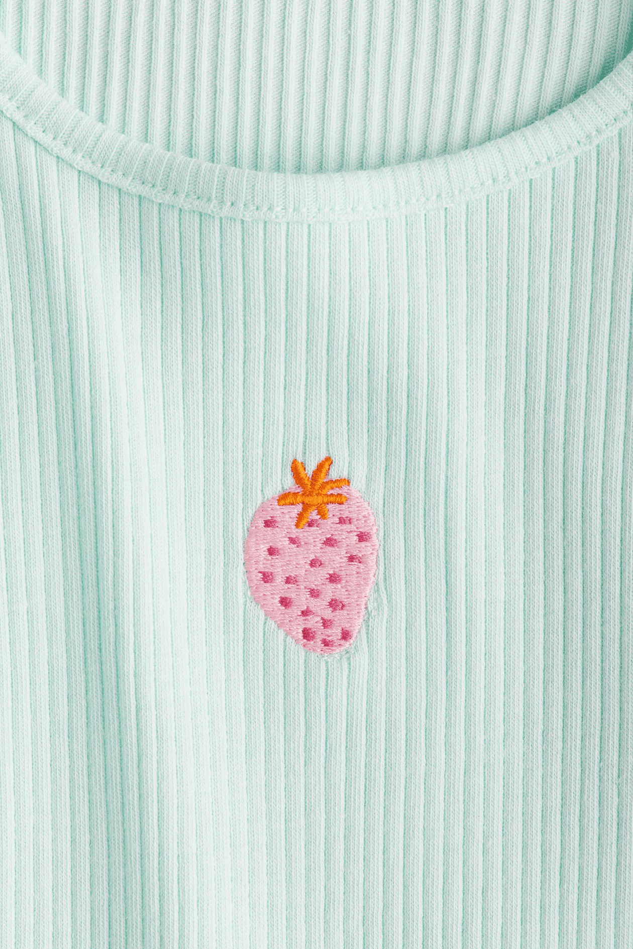 Kız Çocuk Çilek Desenli Fitilli T-Shirt – Yeşil (4-10 Yaş)