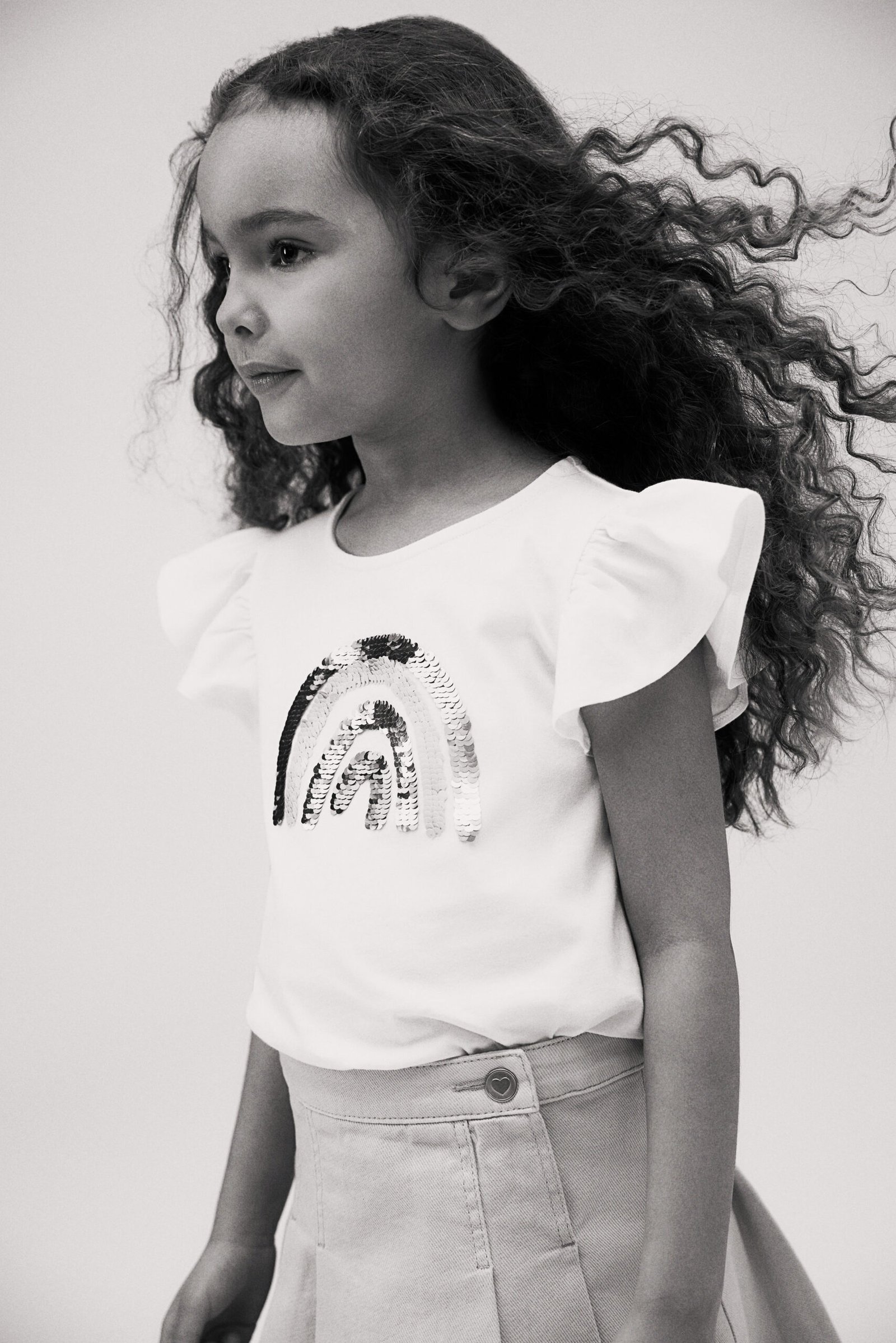 Kız Çocuk İşlemeli Gökkuşağı T-Shirt