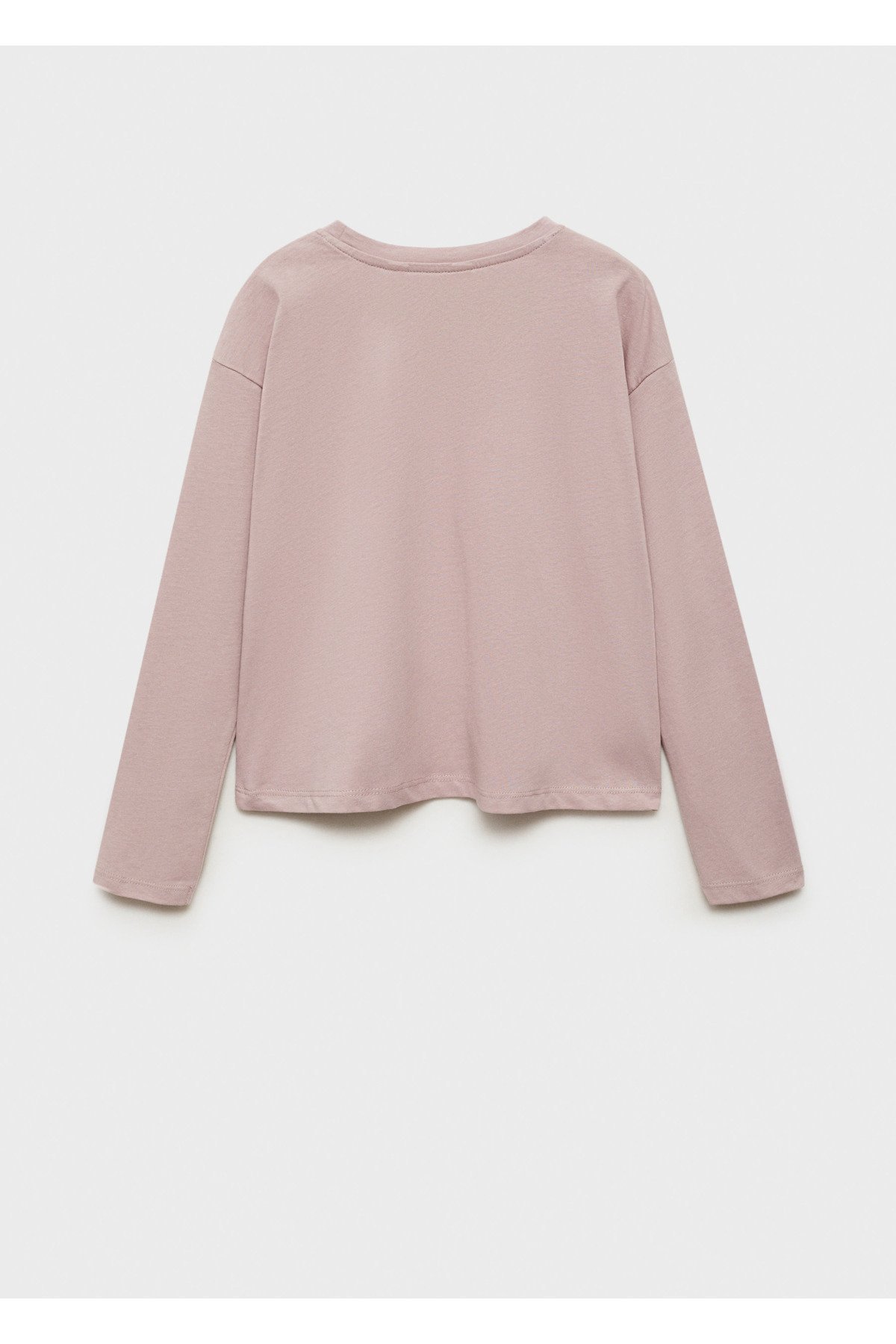 Kız çocuk kalpli pullu t-shirt – Pudra pembe, siyah/bakır payet kalpli ve slogan detaylı. 6-14 yaş arası için MANGO kalitesinde, düzensiz düşük omuzlu, bol kesim şık uzun kollu tişört.