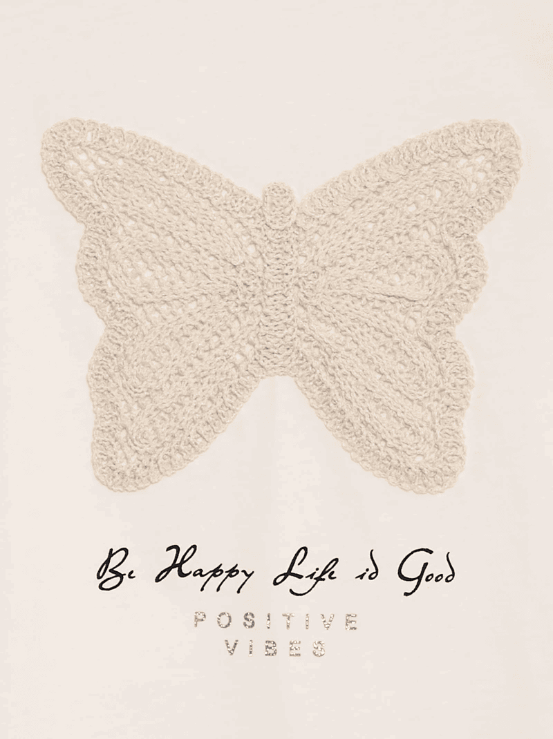 T-shirtün ön kısmında yer alan kelebek nakışı, çocukların doğaya olan ilgisini ve sevimliliğini yansıtır. Sade ama etkileyici bu detay, tişörte modern bir görünüm kazandırırken aynı zamanda çocuk modasında zarif bir seçenek sunar. Günlük kullanımda sade şıklığı arayanlar için ideal bir seçimdir.
