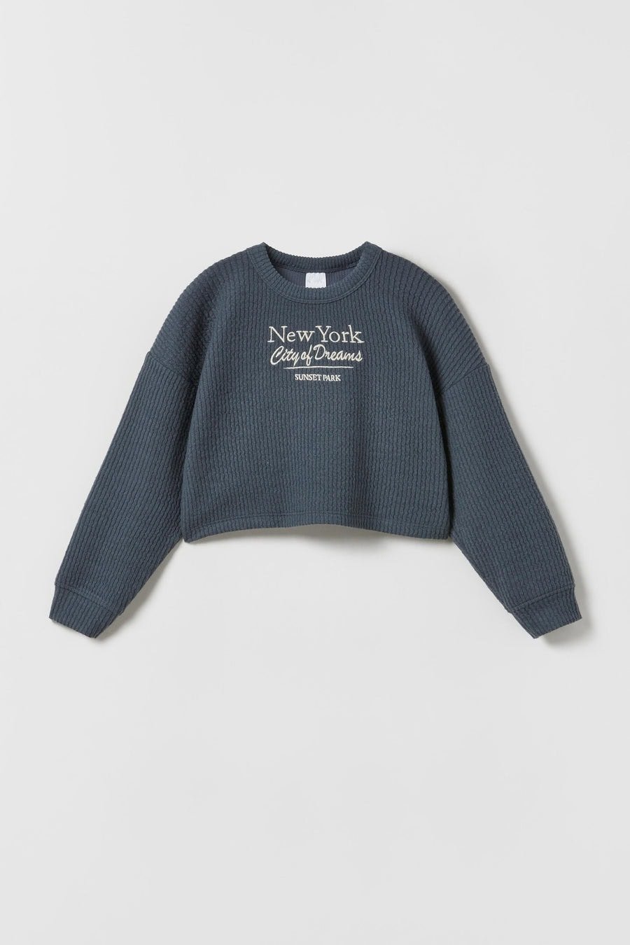 Kız Çocuk Sloganlı Crop Sweatshirt