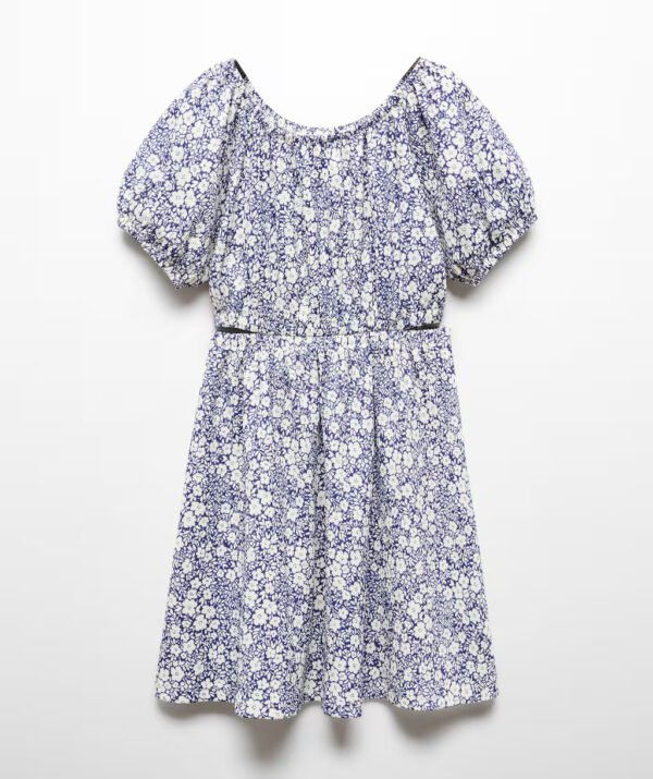 Kız Çocuk Çiçek Desenli Yırtmaçlı Elbise