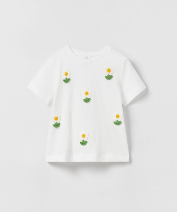 Kız Bebek Papatya Aplikeli T-Shirt