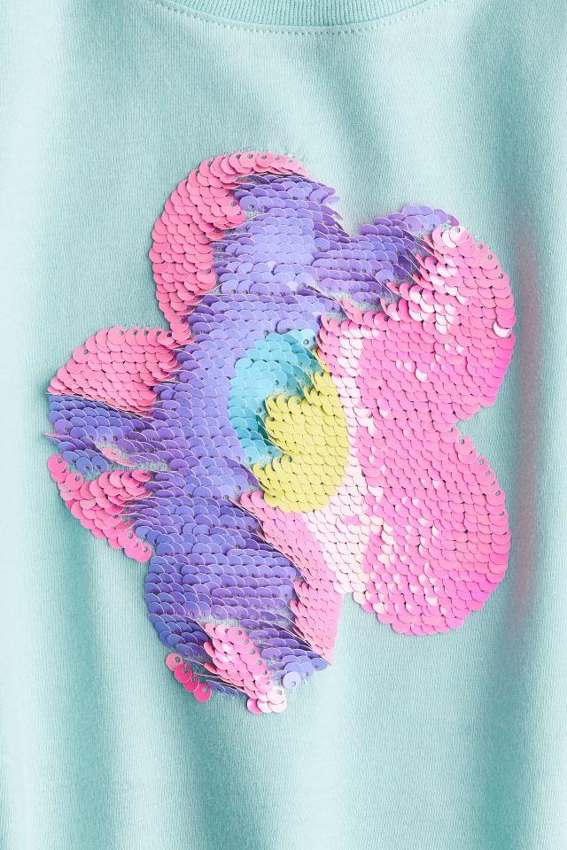 Kız Çocuk Çiçekli Pullu T-Shirt